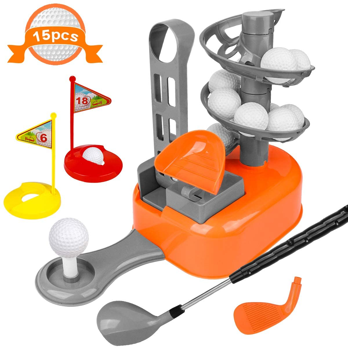 Includes 2 golf clubs, 4 plastic golf balls, 2 flags, a tee and 2 rings. New listing kids golf clubs set, golf toy with 1 golf cart, 2 golf clubs, 1 practice hole, 1. More advanced golf club sets for youth golfers cost $150 or more.